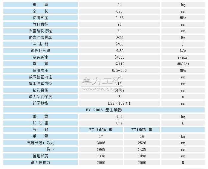 | 鑿巖沖擊頻率 | ≥36 Hz |