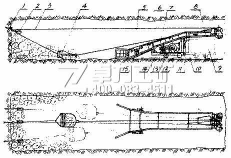 耙斗式裝巖機(jī)用在巖巷掘進(jìn)中配以1.1m3礦車或箕斗進(jìn)行裝載作業(yè),適于凈高[P-15B(B)、P-30B大于2m, P-60B大于2.4m],凈斷面[P-15B(B)4.5m2、P-30B 6m3, P-60B 9m2以上]的巷道,具有裝巖效率高、結(jié)構(gòu)簡(jiǎn)單、可靠性好、應(yīng)用范圍廣等特點(diǎn),不但可以應(yīng)用于平巷,而且可以在30度以下的斜巷中使用,是提高掘進(jìn)速度,實(shí)現(xiàn)掘進(jìn)機(jī)械化的一種主要設(shè)備。