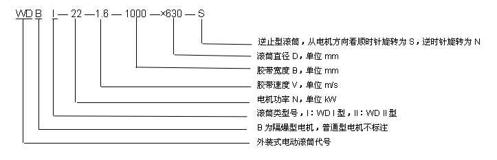 WD型可以制成防爆式電動滾筒。WD型外置式電動滾筒可以分為WD1型外置式電動滾筒和WD2型外置式電動滾筒;WD1型外置式電動滾筒一般大于45KW,電機(jī)帶底角;WD2型的功率一般小于或等于45KW,電機(jī)懸置.