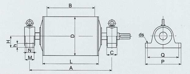 WD I 型外裝式電動滾筒:電機(jī)與滾筒用聯(lián)軸器聯(lián)接,配用臥式電機(jī)(帶底腳)