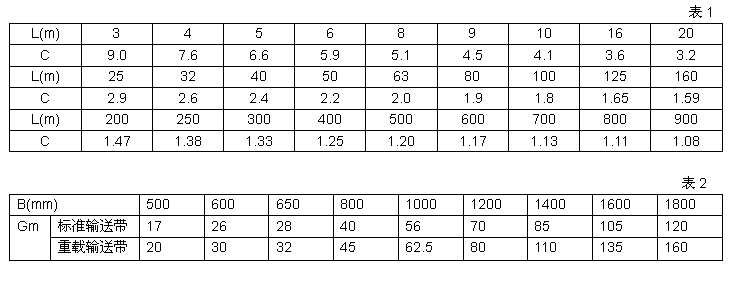 c ——— 輸送帶、軸承等處的阻力系數(shù),數(shù)值可以從表1中查到