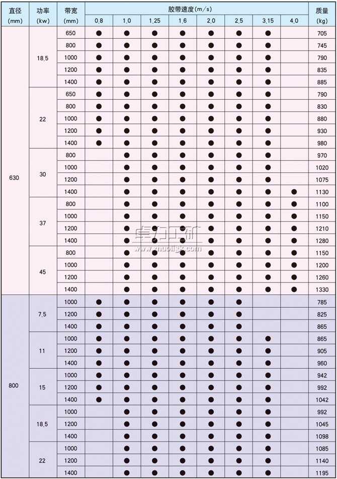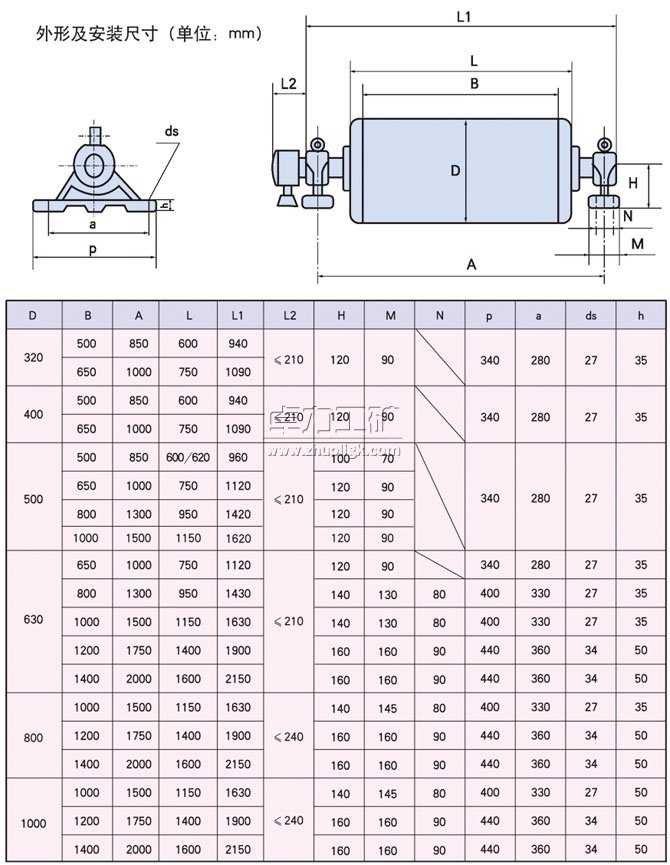 YDB-h隔爆型油冷式電動滾筒基本參數(shù)表、外形尺寸表、安裝尺寸