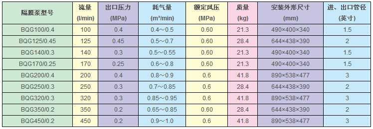 4、揚程、流量可通過氣閥開度實現(xiàn)無級調(diào)節(jié)(氣壓調(diào)節(jié)在1-7bar之間)