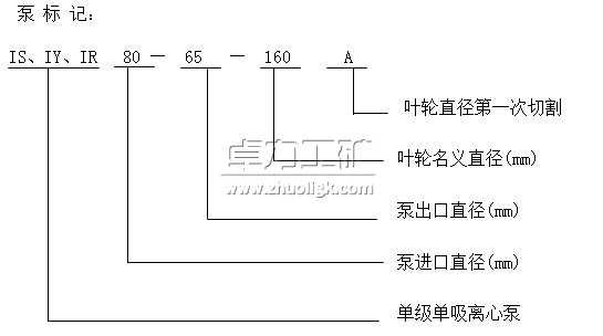 IS、IY、IR型單級單吸離心泵各有29個基本型號,同一型號的泵因改變?nèi)~輪外徑而有不同的性能(在泵型號后面加上A、B等字母表示)。但只用四根軸和四個懸架部件,零件通用化程度高達(dá)92%以上。