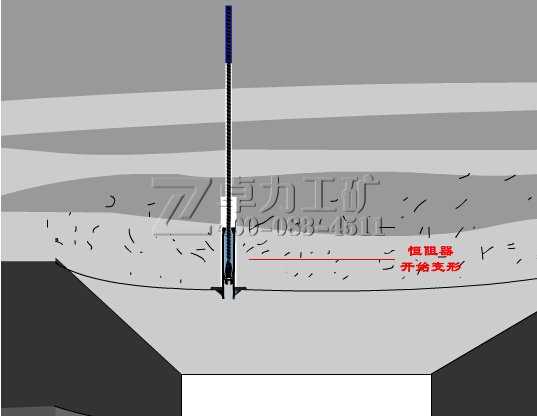 恒阻器和錨桿(索)配套用于巷道支護(hù),恒阻器與和錨桿(索)共同組成完整的支護(hù)體,支護(hù)體能夠在恒阻的情況下發(fā)生拉伸變形,可以充分適應(yīng)圍巖大變形對支護(hù)桿體延伸量的要求,解決了傳統(tǒng)錨桿(索)支護(hù)技術(shù)不能適應(yīng)圍巖非線性大變形破壞特征而造成的支護(hù)失效問題。