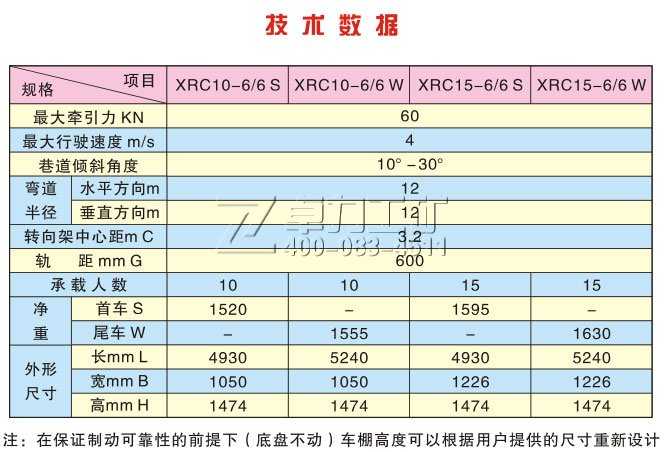 XRC插爪式斜井人車的技術(shù)參數(shù)