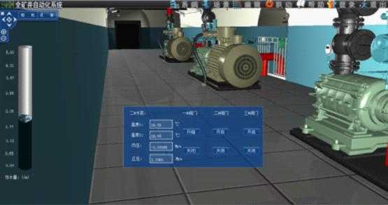 l 三維礦井綜合自動化平臺可接入水泵控制系統(tǒng),在軟件界面上動態(tài)監(jiān)控水泵及其附屬設(shè)備的運行狀況。