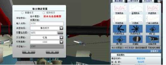 圖4 三維場景中的工作標牌、傳感器展示(傳感器上的有數(shù)據(jù))