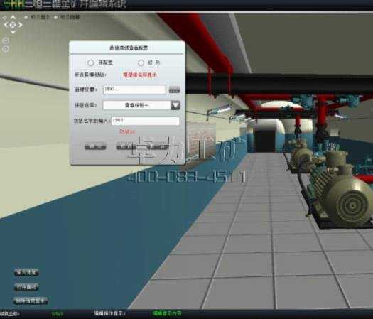 l 支持多個場景顯示,可以將煤礦上的各個工作場景,真實地繪制模擬出來, 如水泵房、工作面、皮帶巷。