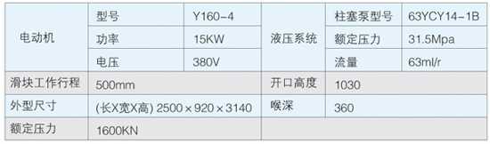 技術(shù)特征:(以160噸液壓機(jī)為例)