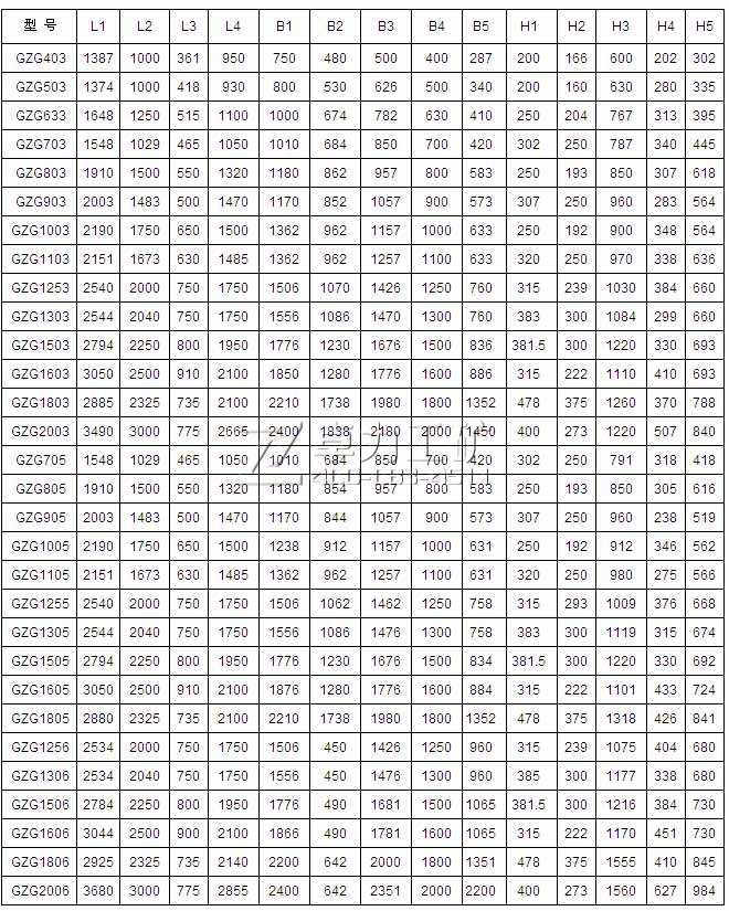 | GZG1253 | 1250×2000×315 | 320 | 100 | 4 | ZG432 | 2×3.51 | 2×1.5 | 1072 | ||