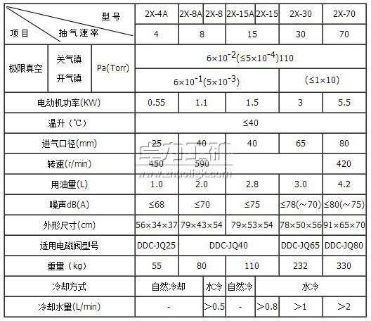四、2X型雙級旋片式真空泵技術參數(shù)表