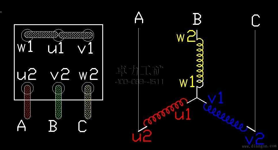 今天在現(xiàn)場學了點三相異步電機的基本接法:星型接法和三角接法。雖然是些很簡單的東,但勉。